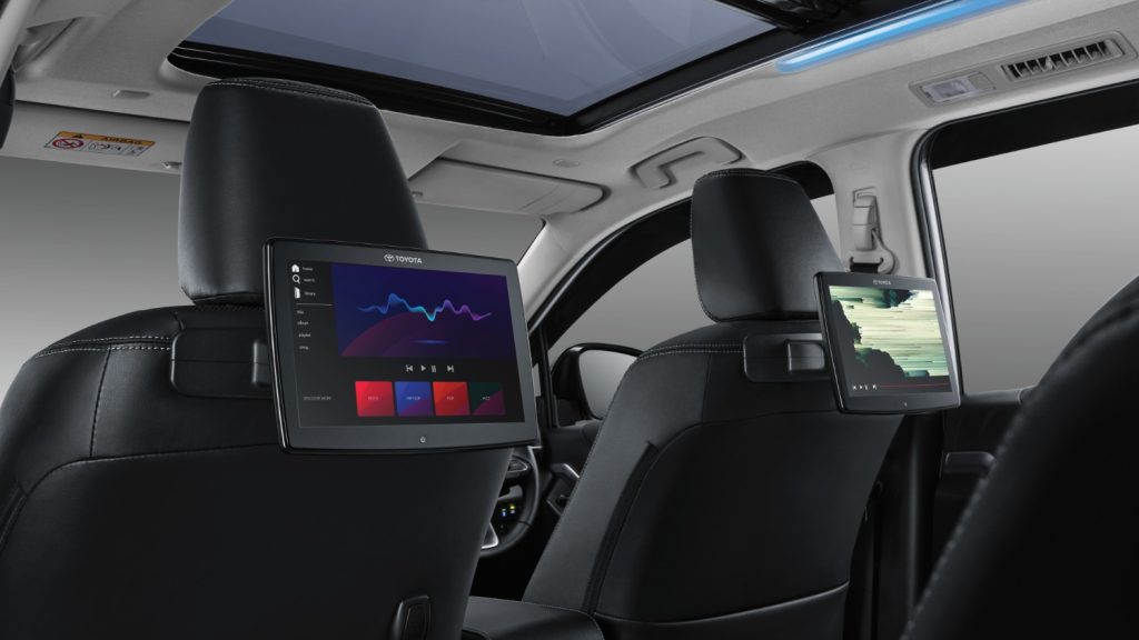 Untuk penumpang belakang, sepasang Rear Seat Entertainment (RSE) pada tipe V, V HEV, dan Q HEV juga kini memiliki fungsi wi-fi hotspot melalui perangkat T Intouch serta Power Back Door dengan Kick Sensor yang memudahkan saat membawa barang.