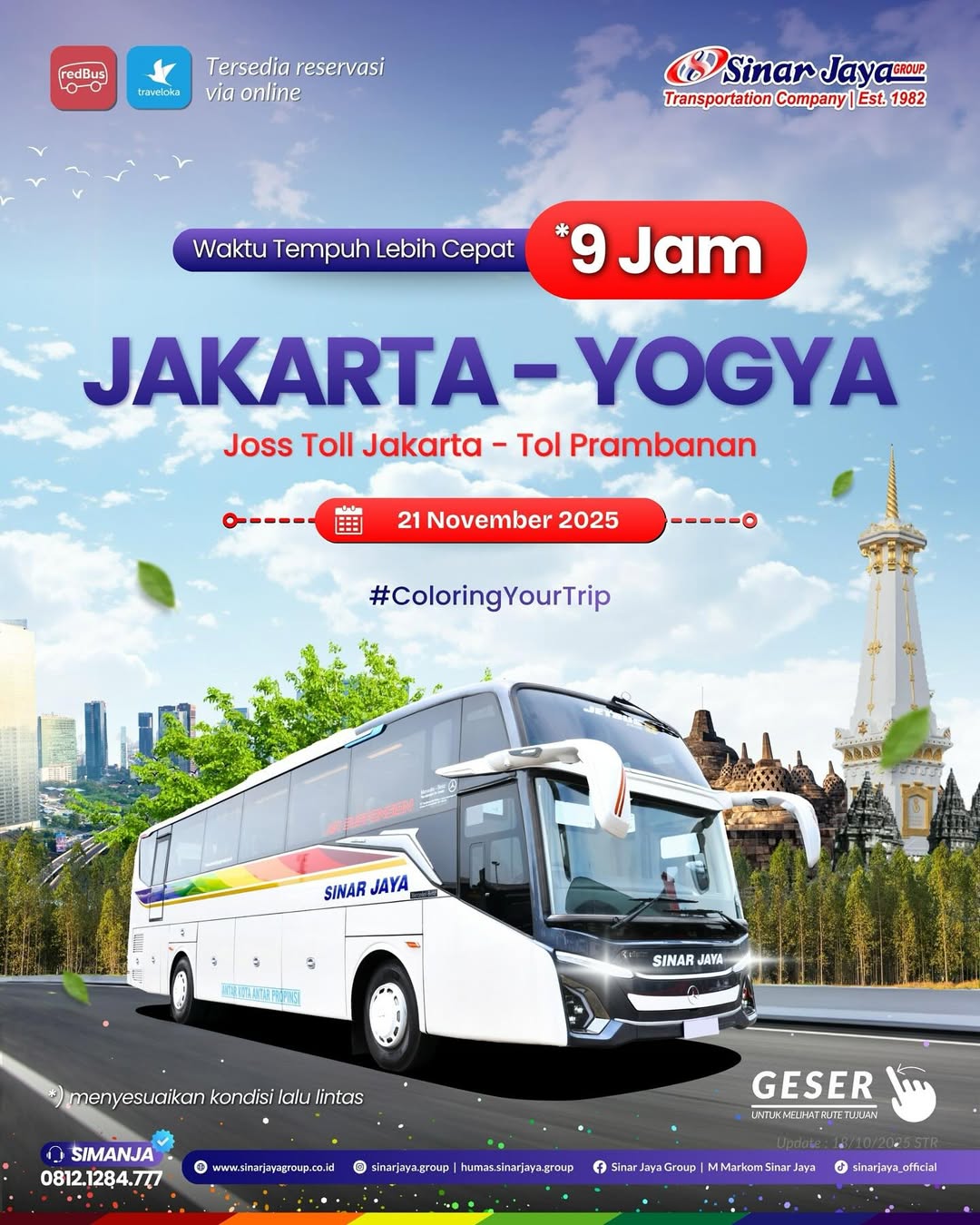 MobilKomersial.com — Layanan bagi penumpang Bus Antar Kota Antar Provinsi (AKAP) untuk cepat sampai dari titik keberangkatan sampai tujuan mulai diterapkan oleh Perusahaan Otobus (PO) Sinar Jaya dengan rute Jakarta – Yogyakarta.