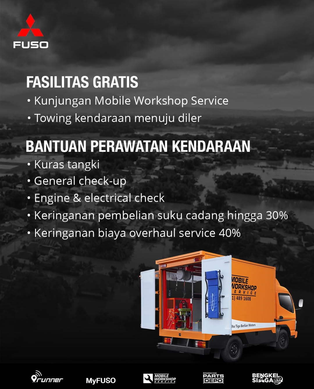 Selain itu, 55 tahun sebagai Andalan Bisnis Sejat, PT KTB hadir juga memberikan dukungan layanan purna jual bagi seluruh konsumen yang terdampak di sekitar area bencana banjir dengan program Fuso Peduli Sumatera.
