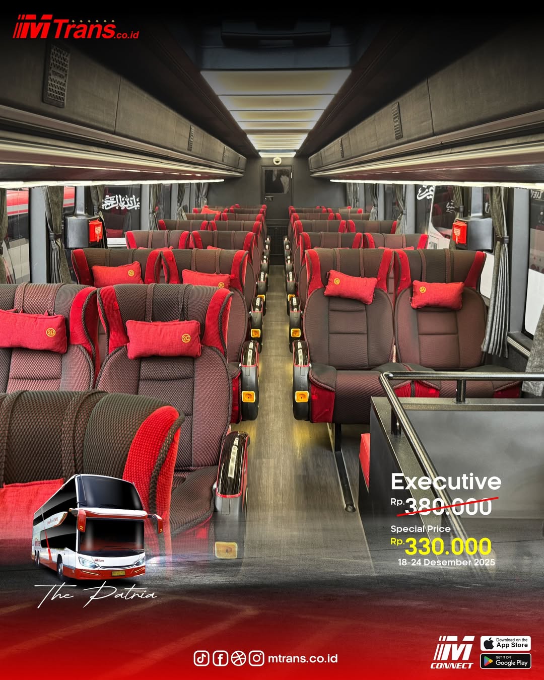 Harga tersebut merupakan harga promo mulai dari 18 hingga 24 Desember 2025, setelah itu kembali ke harga normal menjadi Rp 580.000 untuk sleeper serta Rp 380.000 untuk kursi eksekutif. Saat ini tiketnya sendiri sudah bisa dipesan melalui agen resmi PO MTrans atau melalui online ticketing.