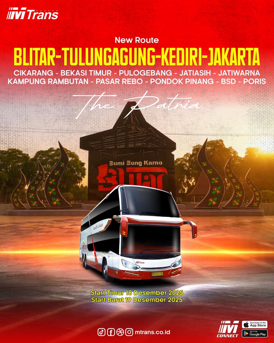 Perjalanan dari Blitar akan dimulai pada tanggal 18 Desember 2025 melalui Tulungagung, Kediri, Cikarang, Bekasi Timur, Terminal Pulo Gebang, Jatiasaih, Jatiwarna serta Kampung Rambutan.