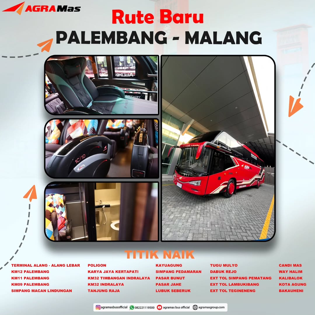 Bagi masyarakat yang hendak merasakan sensasi perjalanan dari Palembang menuju Malang dan arah sebaliknya, dapat membeli tiketnya melaui agen resmi PO Agra Mas serta online ticketing melalui Redbus atau Traveloka.