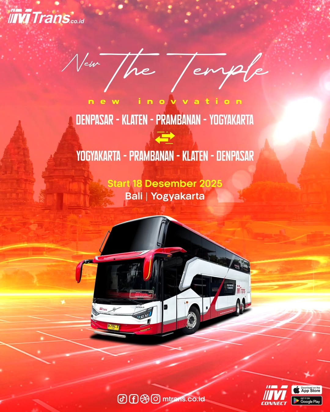 Rute Antar kota Antar Provinsi (AKAP) dari PO Mtrans yang menggunakan bus double decker tersebut mulai resmi beroperasi pada tanggal 18 Desember 2025 dimulai dari Denpasar dan akan melintasi Klaten, Prambanan serta Yogyakarta.