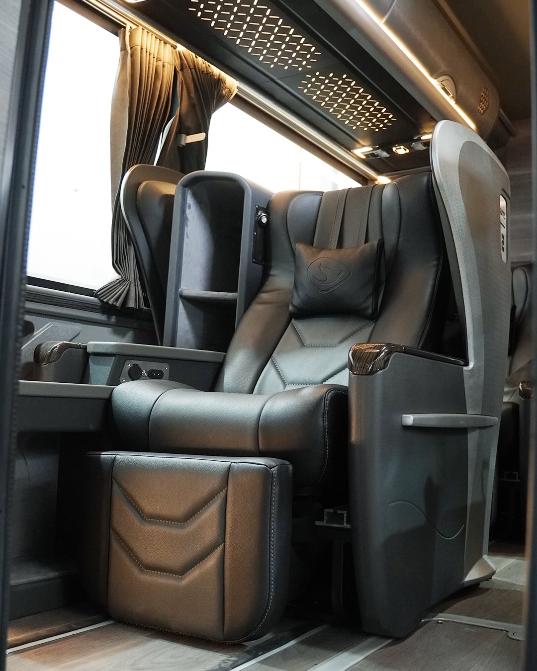 Di kursi tersebut, penumpang dapat mengoperasikan sandaran kursi dan legres melalui tombol yang ada pada panel bagian kanan, serta terdpat lampu baca, port usb untuk mengisi daya ponsel dan meja lipat.
