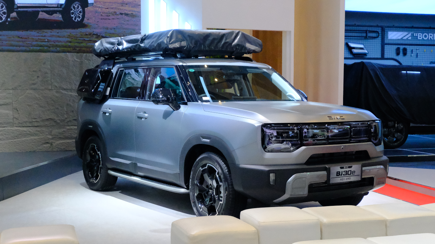 Magnet utama di booth Baic tahun ini adalah BJ40 Plus, sebuah SUV ikonik dengan desain boxy yang kental akan aura petualang. Kendaraan yang dibanderol Rp710 juta ini bukan sekadar gagah di atas kertas, prestasinya telah teruji di medan ekstrim seperti Rally Dakar.