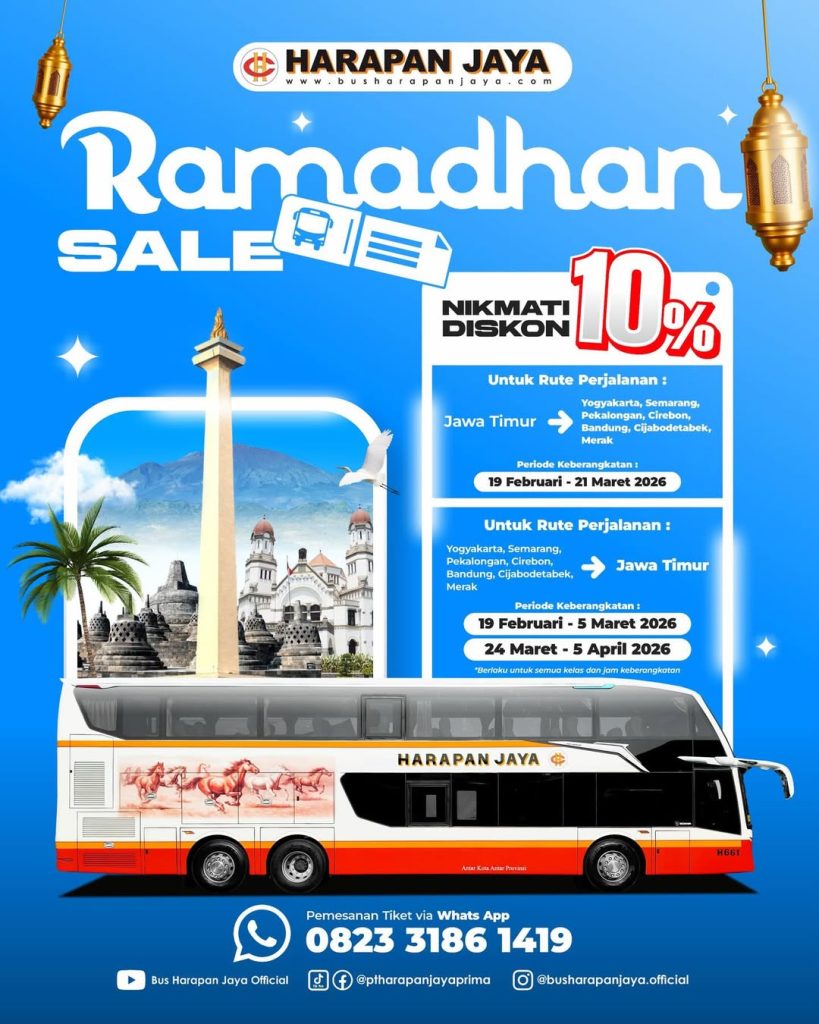 Dengan kemudahan akses dan potongan harga yang ditawarkan, mudik tahun 2026 bersama PO Harapan Jaya dipastikan akan menjadi perjalanan yang berkesan tanpa harus menguras kantong terlalu dalam.