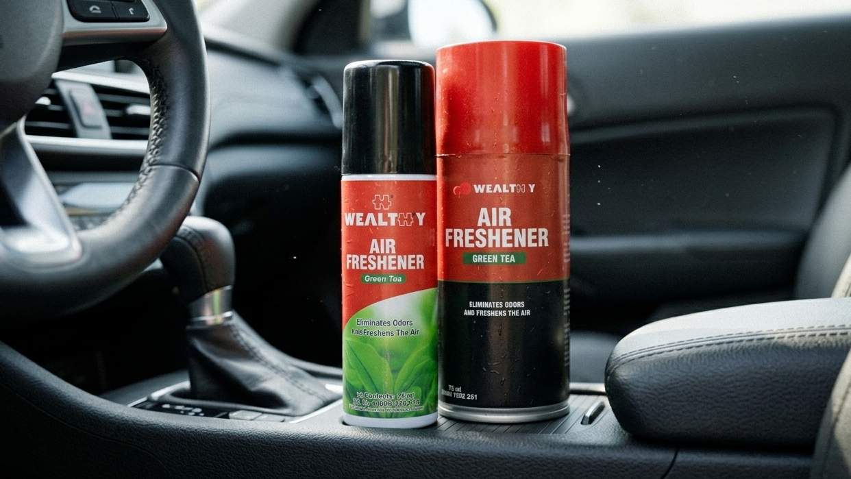 Salah satu produk yang sangat direkomendasikan untuk disiagakan dalam laci dashboard adalah Wealthy Air Freshener. Ya, produk ini bukan sekadar pengharum ruangan biasa, melainkan pelindung kesehatan selama di perjalanan.