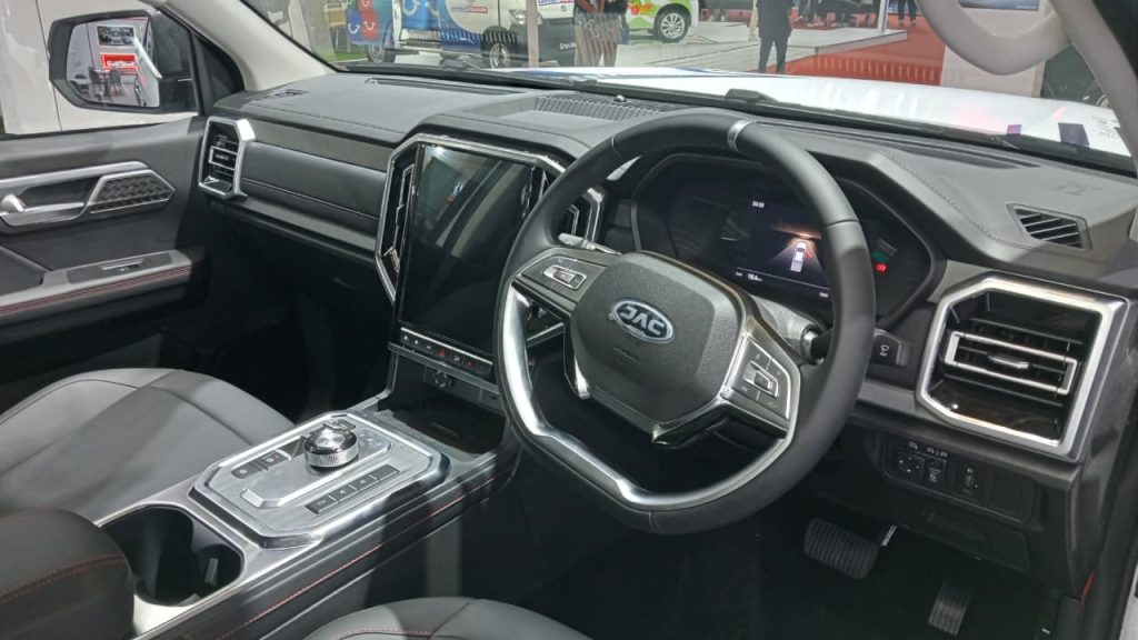 Masuk ke dalam kabin, interior JAC Trekker T9EV menyuguhkan nuansa sporty yang elegan. Pengemudi dimanjakan dengan panel instrumen digital berukuran 7 inci serta layar hiburan MP5 layar sentuh sebesar 10,4 inci yang mendukung konektivitas Bluetooth.