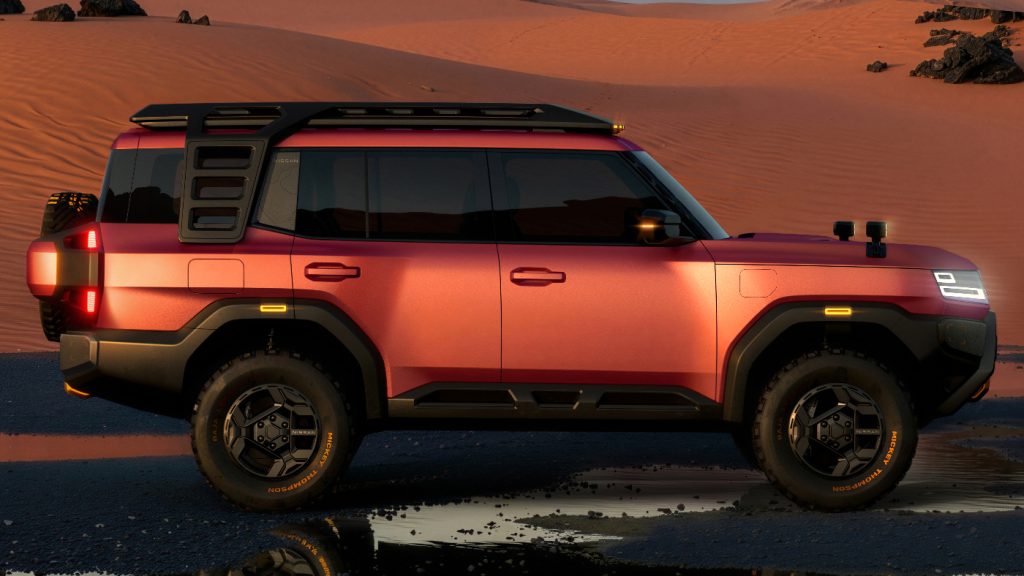 Kesan off-road dipertegas melalui penggunaan skid plate yang kokoh, kait derek, serta lampu tambahan khusus medan berat. Guratan otot pada lengkung roda serta keberadaan ban cadangan yang bertengger di bagian belakang menambah kesan maskulin.