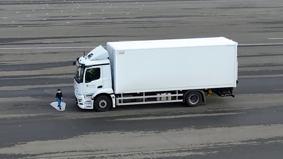 Dalam pengujian tersebut, Mercedes-Benz Trucks mencatatkan nilai yang sangat positif dalam mendeteksi objek di titik buta (blind spot) saat kendaraan berbelok atau bermanuver pada kecepatan rendah di area perkotaan.